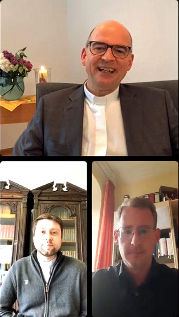 Würzburg/Dettelbach/Haibach (POW) Warum will jemand heutzutage noch Priester werden? Welche Hoffnungen und Ängste bewegen angehende Priester? Und wie sehen sie die Zukunft der Kirche? Darüber hat Bischof Dr. Franz Jung auf dem Social-Media-Kanal Instagram @bistumwuerzburg am Mittwochabend, 12. Mai, mit den Diakonen Manuel Thomas (28) und Benjamin Schimmer (34) gesprochen. Bischof Jung weiht sie am Samstag, 22. Mai, im Würzburger Kiliansdom zu Priestern. Unter dem Hashtag #ausgetauscht setzte er seine in der Fastenzeit gestartete Reihe von Gesprächen fort.