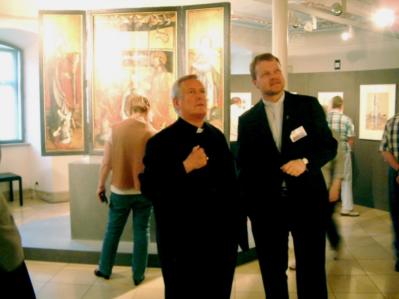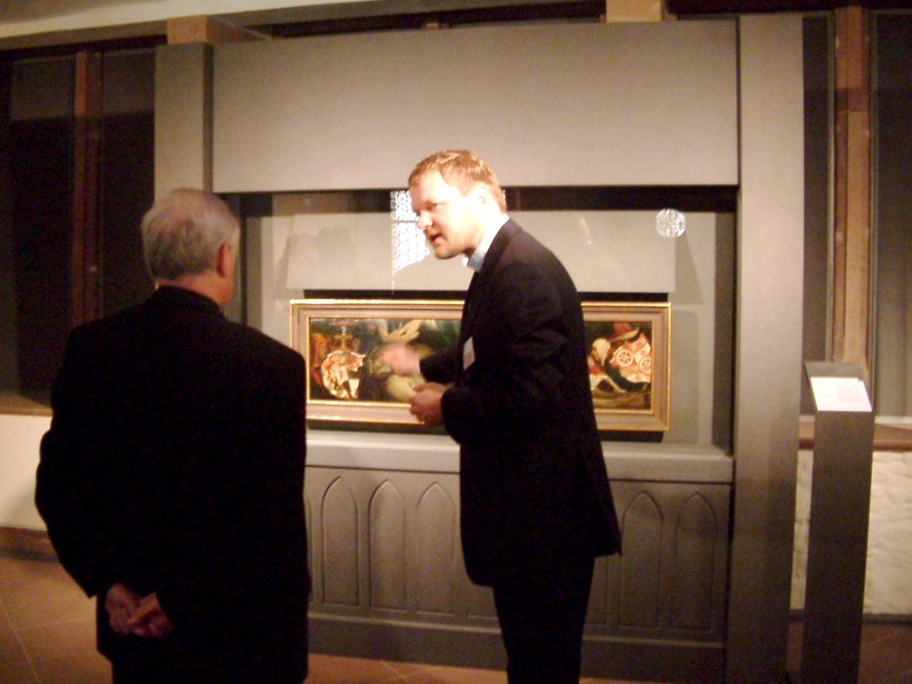 Von Dekan Jürgen Vorndran ließ er sich an die vier Ausstellungsorte Stiftsmuseum, Stiftsbasilika, Kunsthalle Jesuitenkirche und Schloss Johannisburg führen. Besonders beeindruckt zeigte er sich von den für die Ausstellung restaurierten und aus verschiedenen Sammlungen zusammengefügten Magdalenenaltar. Ausdrücklich begrüßte er den über die Ausstellung hinaus in Aussicht gestellte erhalt des Gesamtkunstwerkes.