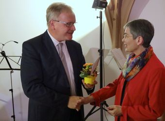 Bernhard Schweßinger, Leiter des Medienhauses der Diözese Würzburg, erinnerte zu Beginn des Abends daran, dass sich bayernweit rund 12.000 Ehrenamtliche aller Altersgruppen in den katholischen Büchereien auch in kleinen Orten engagierten. „Deswegen sind diese Einrichtungen gerade im Blick auf den ländlichen Raum besonders wichtig.“ Zugleich überbrachte Schweßinger Grüße von Eva Gottstein, Beauftragte der Bayerischen Staatsregierung für das Ehrenamt, die ihre Teilnahme an der Veranstaltung krankheitsbedingt kurzfristig absagen musste.
