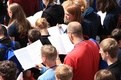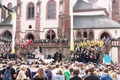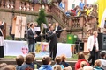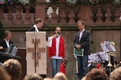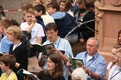 das Standesamt in Aschaffenburg direkt am Stiftsplatz liegt und sich dort gerade Teilnehmer des Pueri Cantores – Chorfestivals 2011 versammelt hatten, um ihr Friedensgebet zu singen und zu feiern. Im Rahmen des fünf Tage andauernden Treffens in Würzburg war der Freitag der Ausflugtag, an dem sich die Teilnehmer über die ganze Diözese verteilten. Die Knabenchöre waren von der Bischofsstadt nach Miltenberg aufgebrochen, die Kinderchöre besuchten Münnerstadt und Karlstadt und die Mädchenchöre Kitzingen und Ochsenfurt. Nach Aschaffenburg war mit den Jugendchöre die zahlenmäßig größte Gruppe gekommen. Von Oberbürgermeister Klaus Herzog wurden sie herzlich begrüßt und darauf hingewiesen, das 143 verschiedene Nationen in der Stadt am Untermain friedlich zusammen leben. Dies war ein guter Auftakt für das Friedensgebet, dem Stiftspfarrer Martin Heim vorstand und das von den Chören unter der Leitung von Matthias Balzer, Präsident des Deutschen Pueri Cantores – Verbandes, musikalisch gestaltet wurde. Heim zeigte sich bewegt von dem Bild des harmonischen Miteinanders, dass die vielen jungen Menschen ausstrahlten. „Ihr seid ansteckend und bewegend, ihr seid junge Kirche, die immer wieder dazu aufruft, dass gemeinsame Lied des Friedens zu singen“, so der Stiftspfarrer in seiner Predigt.