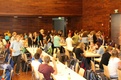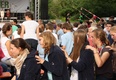 Gegen Abend trafen sich die Ausflügler alle auf dem Aschaffenburger Volksfestplatz beim Fest „Brüderschaft der Völker“ wieder. Diese Veranstaltung gibt es bereits seit 28 Jahren. Sie will die Möglichkeit geben, dass die Menschen aller Nationen zusammen kommen und sich begegnen. Dieses Mal wurde die sie durch den Besuch der über 1000 Chorsänger aus der ganzen Bundesrepublik bereichert. Unter der Leitung von Andreas Unterguggenberger gestalteten sie auch einen Teil des Bühnenprogramms mit der Aufführung der „Little Jazz-Mess“ von Bob Chilcott. Danach ging es nach einem langen Tag voller Musik und Spaß zurück nach Würzburg.