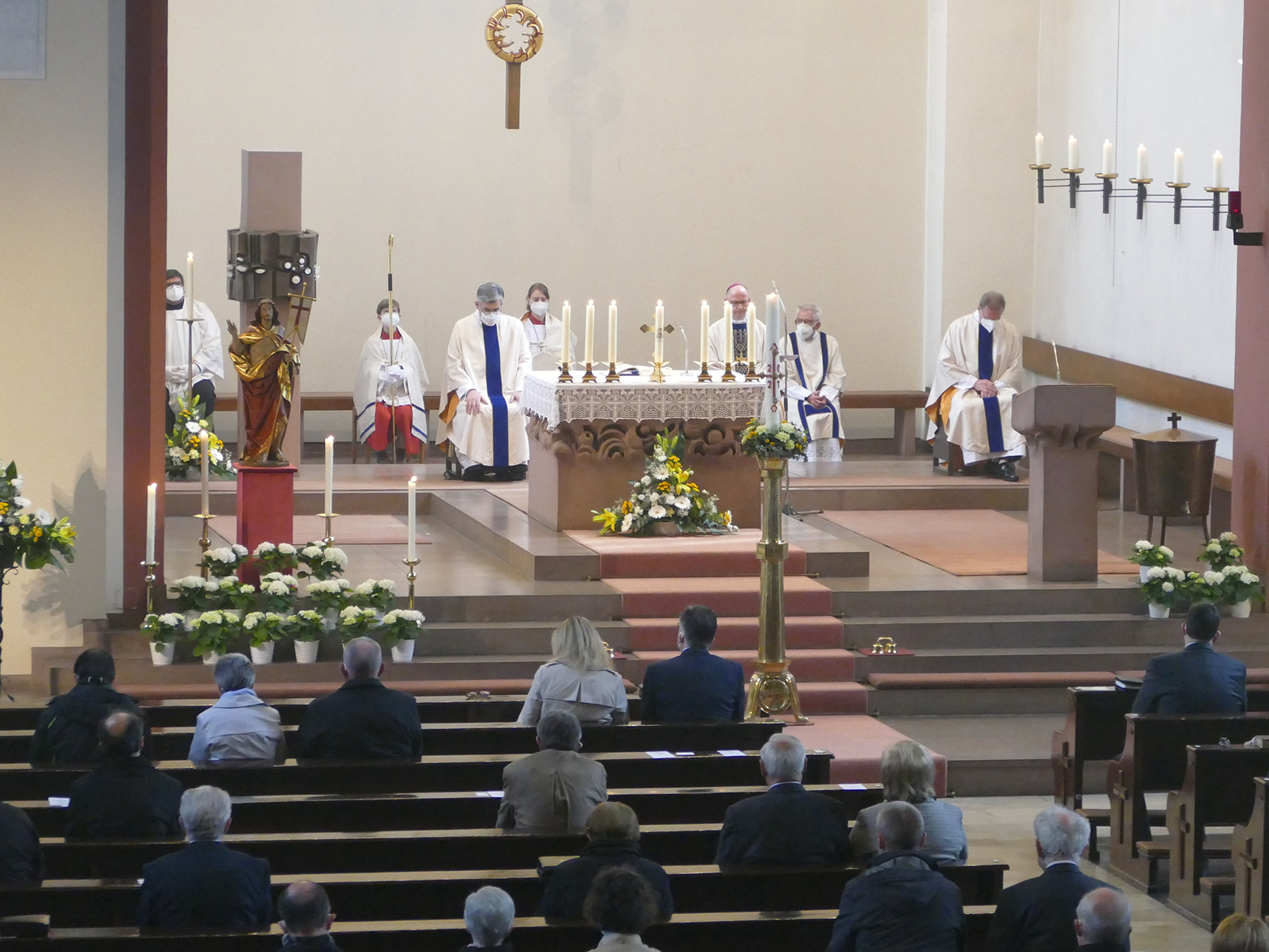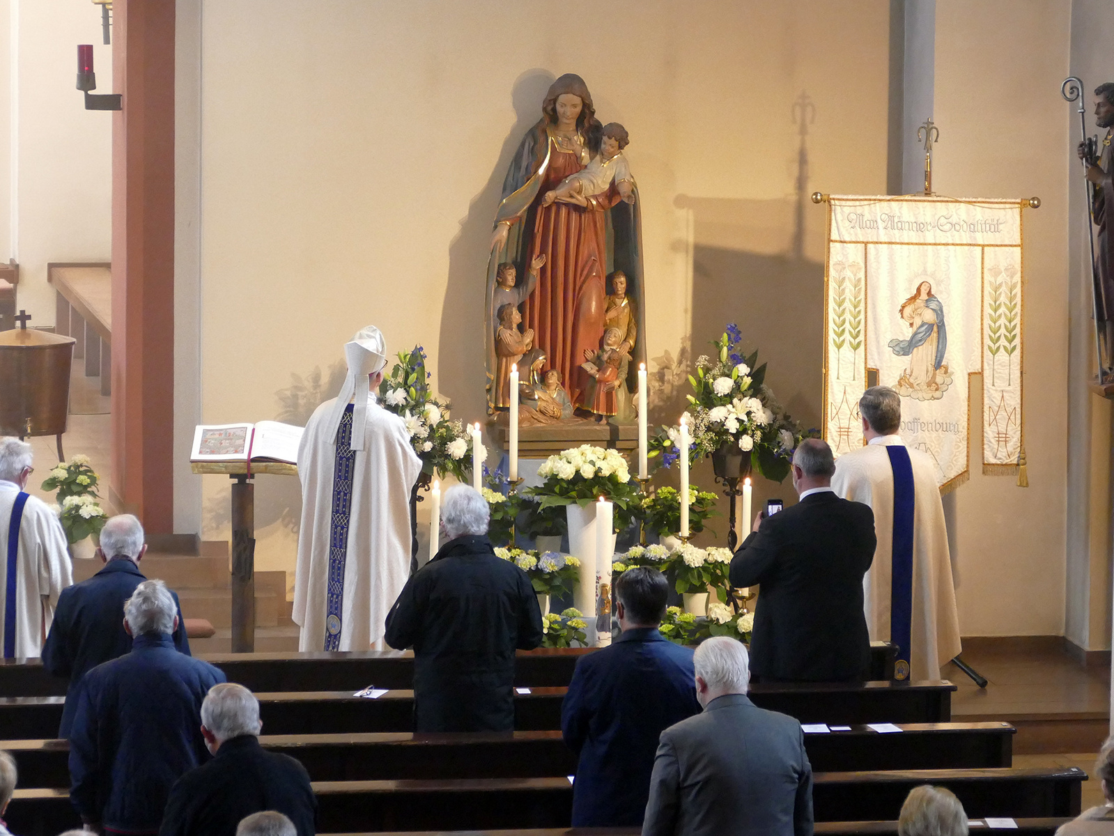 Stolzenberger dankte am Ende des Gottesdienstes für die inspirierenden Worte und sprach von der Hoffnung, das Jubiläum auch für einen Neuaufbruch der Eucharistisch-Marianischen Männersodalität zu nutzen. Er kündigte an, dass es im Herbst unter anderem mit der Wallfahrt der Lichterprozession durch die Stadt weitere Anlässe gebe, der 400 Jahre seit der Gründung zu gedenken. Musikalisch wurde der Gottesdienst vom Frauenensemble Quattrucelli unter der Leitung von Ulrike Matheis, vom Organisten und Kantor Markus Heinrich und von den Trompetern Heribert Ball und Mario Albrecht umrahmt.
