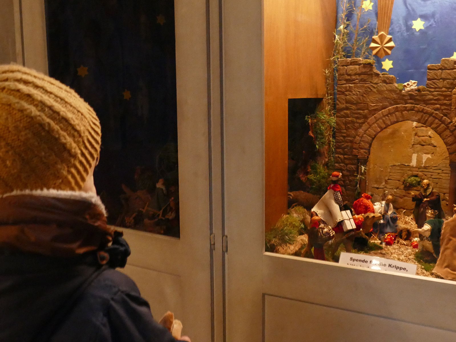 Das Bild zeigt die Krippe in der Muttergottes-Pfarrkirche in Aschaffenburg. Konstantin Sauer hatte die Idee, sie in diesem Jahr in einen Beichtstuhl einzubauen. Die Krippe kann während der Öffnungszeiten der Kirche besichtigt werden.