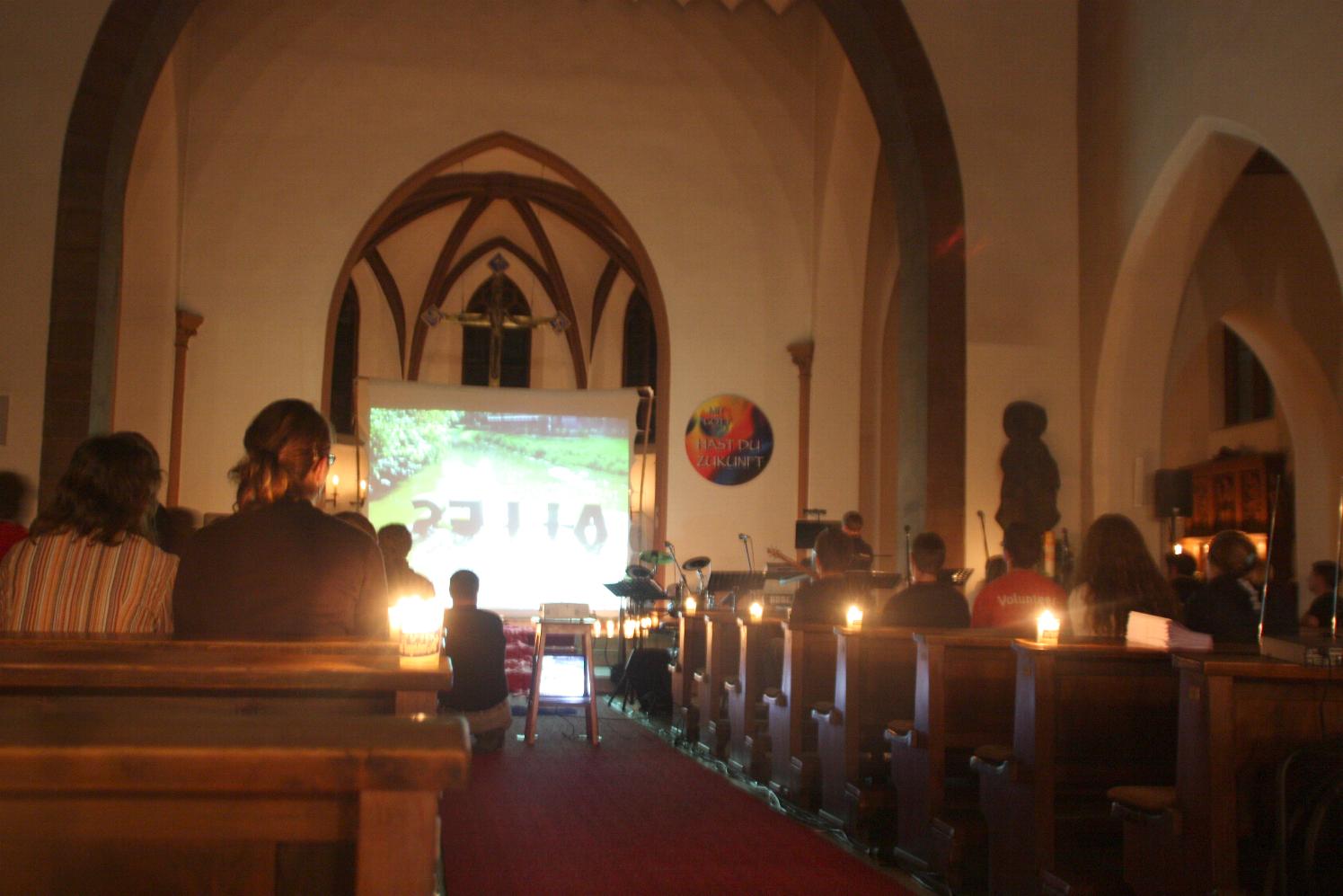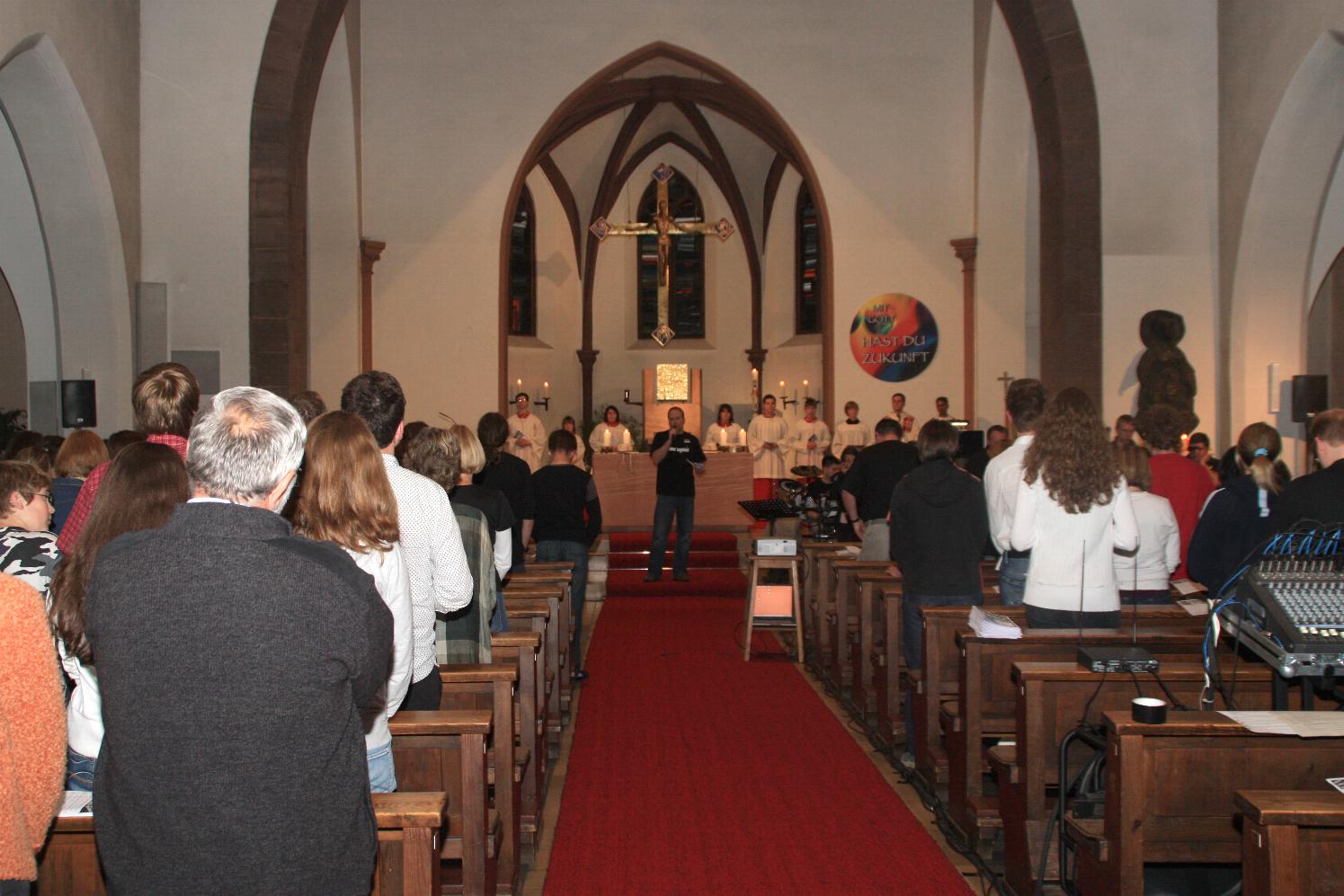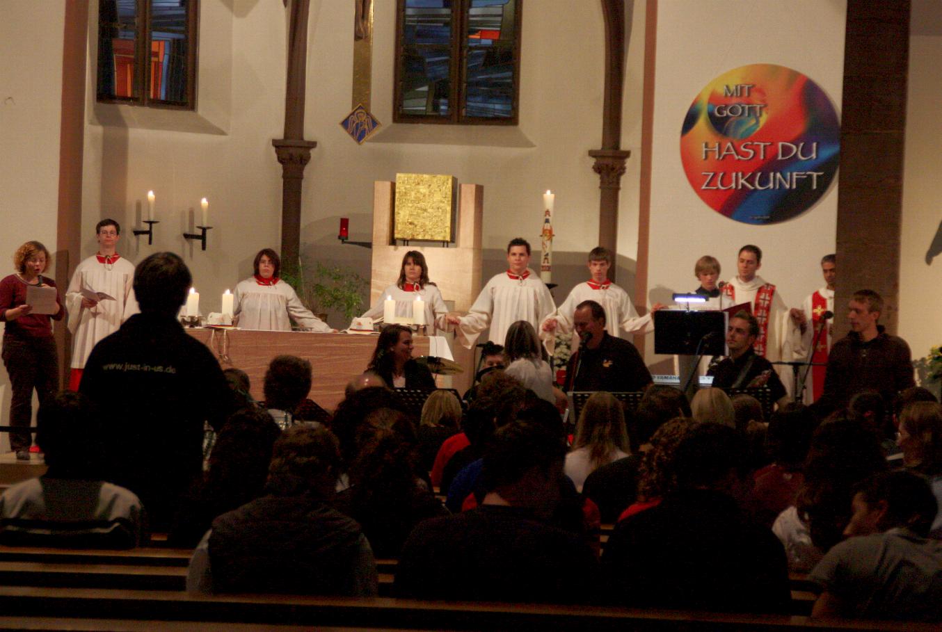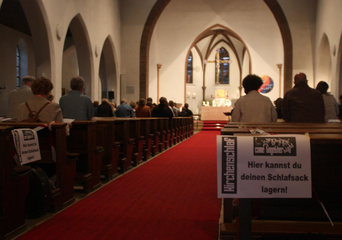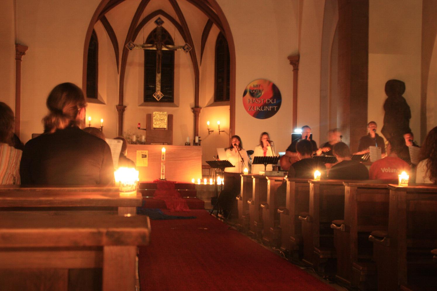 Kraftvoll begleitet wurde der Gottesdienst von der Alzenauer Band Just In Us, die später auch die Vigil um Mitternacht musikalisch umrahmten. Dazwischen gab es die Möglichkeit zu Austausch und Party in der Jugendbildungseinrichtung Katakombe und rund um die St. Agatha – Kirche. 40 Jugendliche blieben dann auch nach der Vigil in der Kirche zum Kirchenschlaf. Die „Come together night“ endete erst am Samstag morgen mit einem Morgengebet und dem gemeinsamen Frühstück. Vorbereitet war das Weltjugendtagstreffen von der Regionalstelle für kirchlichen Jugendarbeit gemeinsam mit einem Team ehrenamtlicher Mitarbeiter und der Oberministrantenrunde Aschaffenburg.