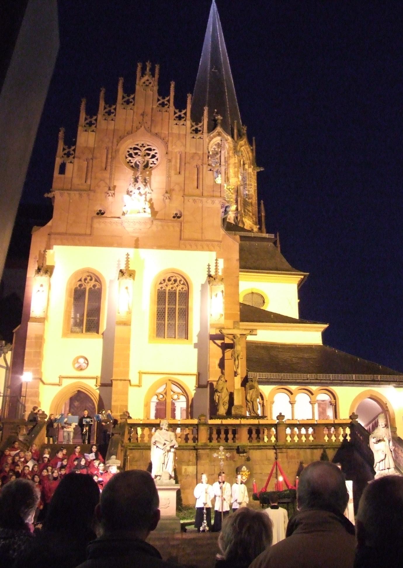 Die von Flashaar entwickelte Lichtinszenierung ist von der Aschaffenburger Elektrofirma Schork in die Tatumgesetzt worden. Ermöglicht wurde das Projekt durch Gelder der Stadt Aschaffenburg und die Unterstützung durch den Verein Altstadtfreunde, den Stiftsbauverein und die Stiftspfarrei. Bei der Premiere des Lichtkonzeptes kamen neben den Augen auch die Ohren nicht zu kurz: die Stiftschorknaben und –mädchen und das Sulzbacher Bläserensemble trugen adventliche Lieder vor. Und damit die Geschmackssinne nicht zu kurz kamen, wurde die Eröffnung durch den Glühwein- und Punschstand des Stiftbauvereins abgerundet. Damit wurde die Inbetriebnahme der Beleuchtung zu einem Fest für die Sinne.