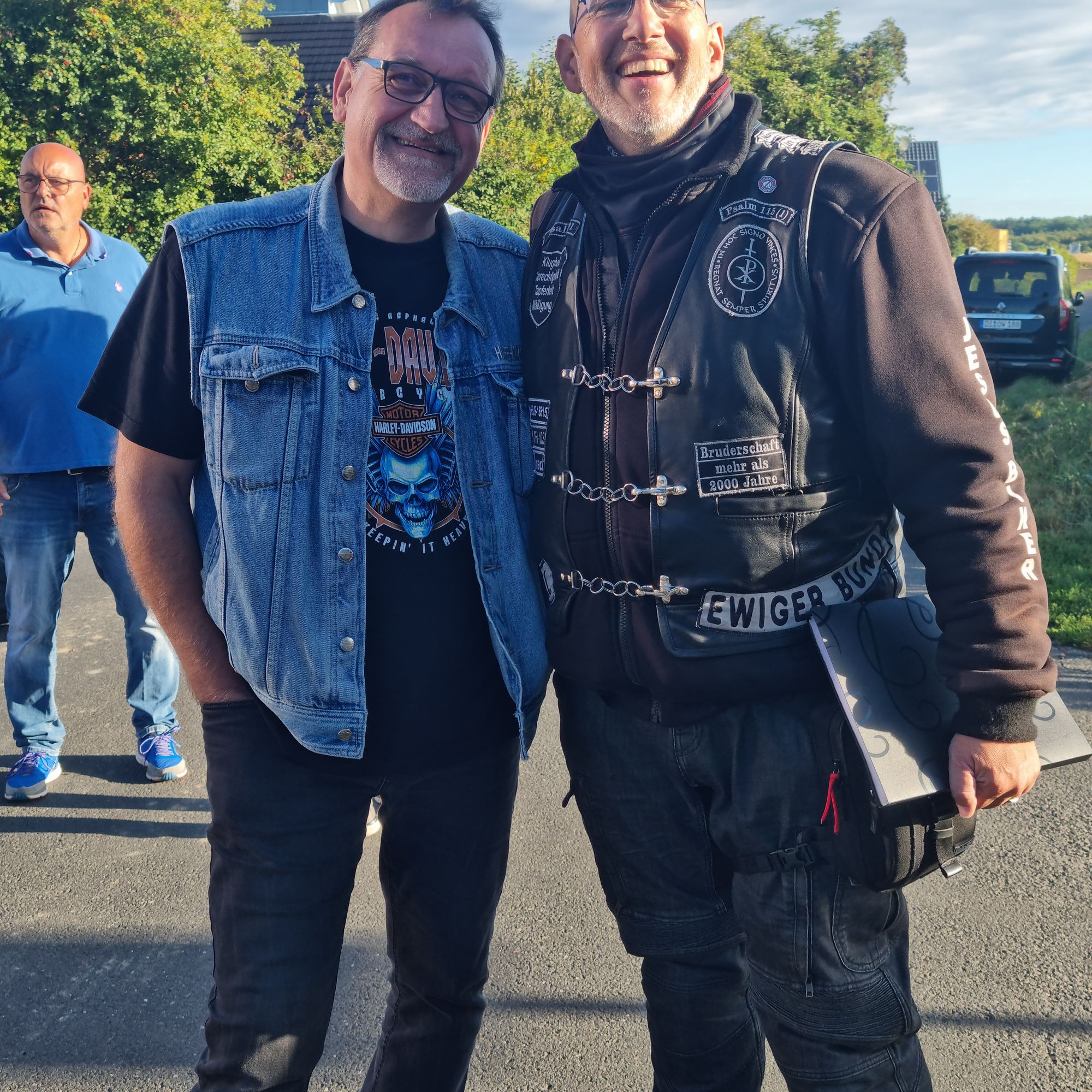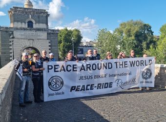 Gemeinsam mit etwa 35 Unterstützern hatten die „Jesus-Biker“ in Altötting und Verona Halt gemacht, Gottesdienste gefeiert und auch neue Unterstützer und Mitglieder aufgenommen. „Das war für mich auch nochmal ein sehr bewegender Moment“, sagt Dempewolf, der sich als Novizenmeister um die Mitgliedsanwärter kümmert. Gemeindereferentin Andrea Buhler-Schmidt aus dem Pastoralen Raum Aschaffenburg beschreibt die Fahrt als bewegende und „spannende, doch sehr ungewöhnliche Reise“. Sie fuhr gemeinsam mit der Religionslehrerin im Kirchendienst Simone Dempewolf im Auto hinterher. So sorgten sie für die Sicherheit der Biker im italienischen Straßenverkehr. „Ich freue mich immer noch, dass ich dabei sein durfte“, sagt Buhler-Schmidt.