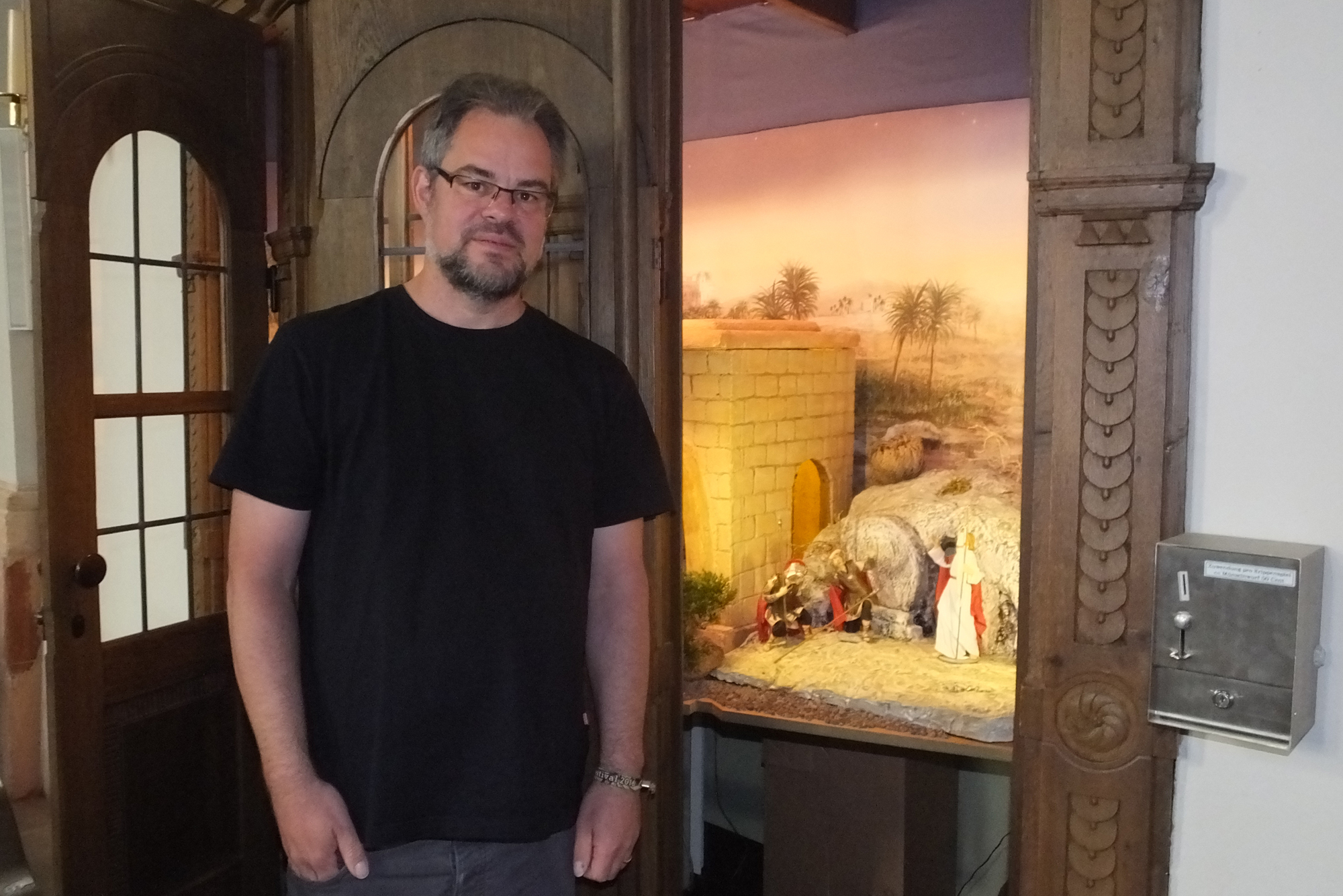 Ganz einfach: Weil es in der Kirche von Johannesberg bei Aschaffenburg eine dieser Krippe gibt, die das ganze Jahr über zu sehen sind. Jahreskrippen nennt man die und sie zeigen nicht nur die Weihnachtsszene, sondern auch andere biblischen Motiven. Burkard Vogt wollte vor Ort vom Erbauer mehr über diese Tradition wissen. Und er hat auch gleich mal eine Münze in die dort angebrachte Kasse geworfen, um zu sehen, was dann passiert.