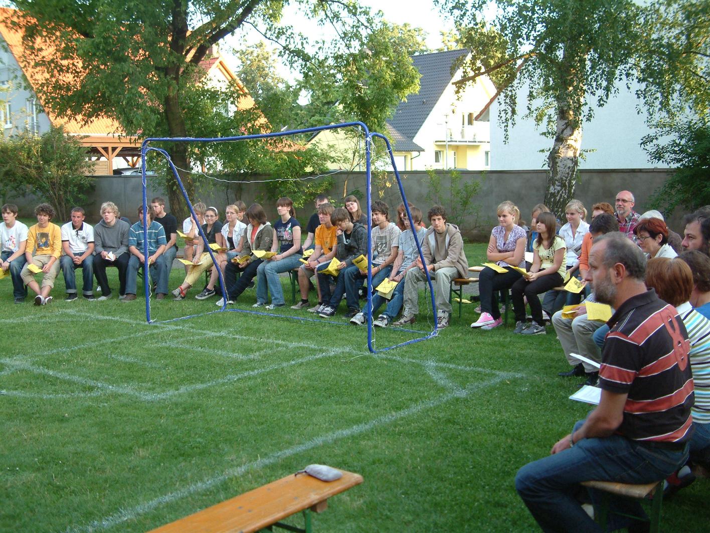 Ein gute Spieltaktik kann man dem Liturgieausschuss jedenfalls nachsagen. Vor allem junge Menschen waren ins Nilkheimer Kirchenstadion gekommen, nicht nur zum Gebet, sondern auch, um anschließend zu feiern, auf eine Torwand zu schießen und gemeinsam das Fußballmatch Schweden gegen Russland anzusehen. Auf die Frage, was er als Trainer den jungen Menschen mit auf den Weg geben würde, bevor sie das „Spielfeld des Lebens“ betreten, meinte Pfarrer Kempf: „Ich wünsche den Jugendlichen, dass sie die Begeisterung, die sie für den Fußball aufbringen, auch in andere Bereiche des Lebens einbringen und einen Stammplatz in ihrer Elf finden.“