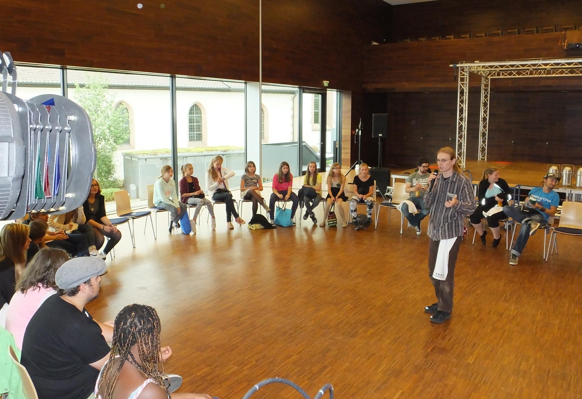 Da stellen zur Zeit 36 Jugendliche ein Musical auf die Beine, das nächsten Samstag Premiere haben soll. "Keine Panik" ist das Motto und dieser Spruch stammt aus dem Sciencefiction-Klassiker "Per Anhalter durch die Galaxis". Doch viel mehr stand zu Beginn des Projektes noch nicht fest. Burkard Vogt hat die Künstler an ihrem ersten Arbeitstag besucht und wollte zunächst mal wissen, um was es denn bei diesen Musical gehen soll.