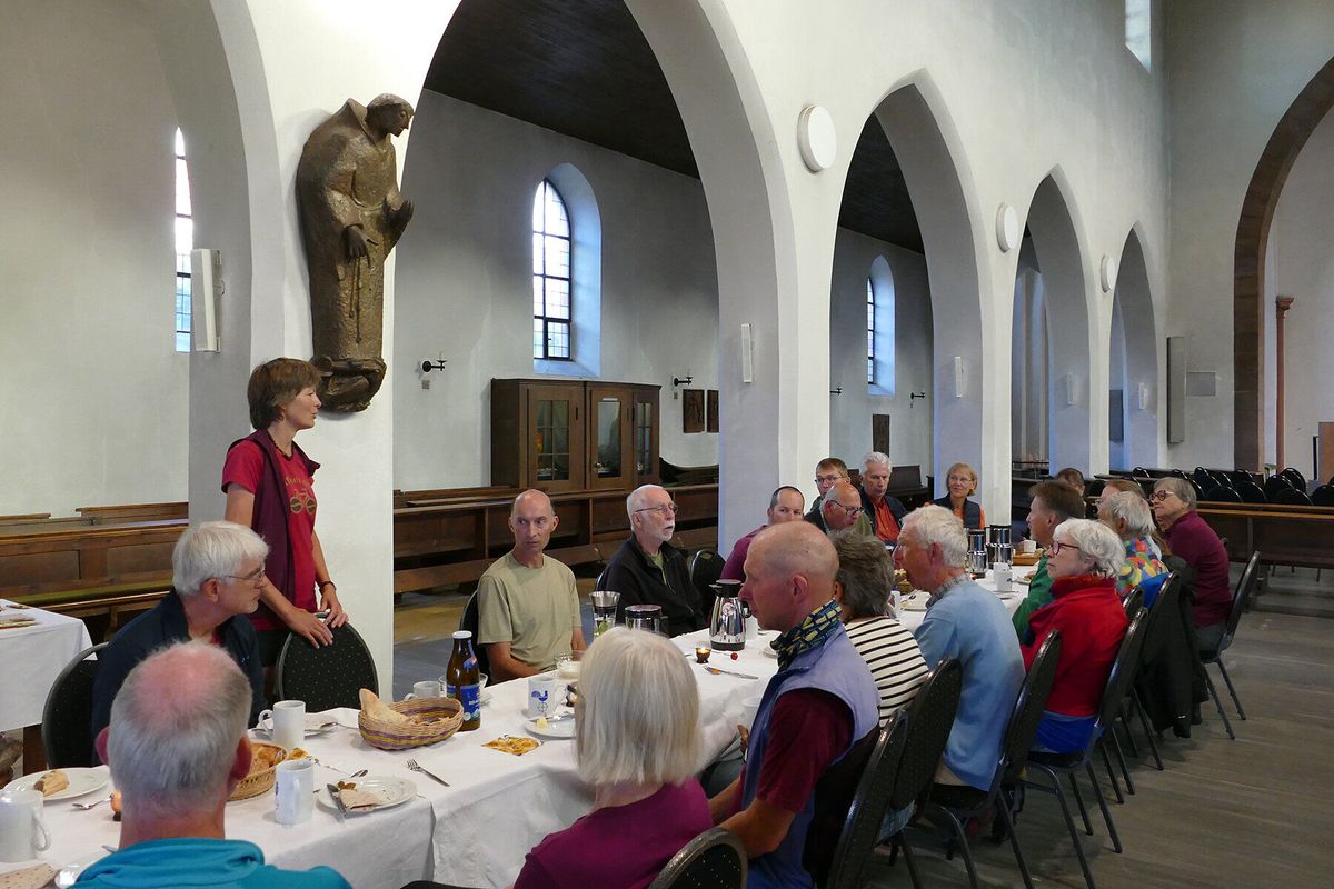 Die zwölf Radfahrerinnen und Radfahrer bringen Nicaragua-Kaffee von Hamburg nach Überlingen und übergaben am Samstag einen Teil ihrer Fracht im Weltladen in Aschaffenburg. Nach der Übernachtung in Gastfamilien trafen sich alle in Sankt Agatha zu einem Mitbringfrühstück. Die Idee der Tour ist es, den ökologisch produzierten und fair gehandelten Kaffee, der nachhaltig mit dem Segelschiff Avontuur aus Nicaragua in Hamburg angeschifft wurde, genauso umweltfreundlich an die Bestimmungsorte zu bringen. Mit 130 Kilogramm war sie gestartet, etwa die Hälfte des Kaffees war bis Aschaffenburg bereits verteilt. Die Bereitschaft zu steigern, sich aktiv für eine nachhaltige Zukunft einzusetzen, ist das Ziel des Vereins. „Wir wollten vom Reden ins Handeln kommen“, erklärte Dr. Maiken Winter, Vorsitzende des Vereins und Organisatorin der Tour. Unterwegs besuchen die Radfahrer Klimaprojekte, setzen sich mit Fakten zum Klimawandel, Naturschutz und Artenvielfalt auseinander und gehen weltanschaulichen und spirituellen Fragen nach. Begleitet werden sie vom evangelischen Pfarrer Karl Mehl aus dem Kirchenkreis Überlingen, Ehemann von Maiken Winter. Er erinnerte in der Segensfeier vor der Kirche an das Jesuswort, dass Christen als das Salz der Erde bezeichnet, und forderte die Teilnehmer auf, Gelegenheiten zu finden, in denen sie dieses Salz sein können: „Das kann auch bedeuten, dass man den Mächtigen manchmal ihre Suppe versalzen muss.“ Nach dem Segen brachen die Radfahrer auf. Die nächsten Stationen sind Buchen, Heilbronn, Stuttgart, Tübingen, Jungingen und Pullendorf. Die Tour endet am 6. September in Überlingen.