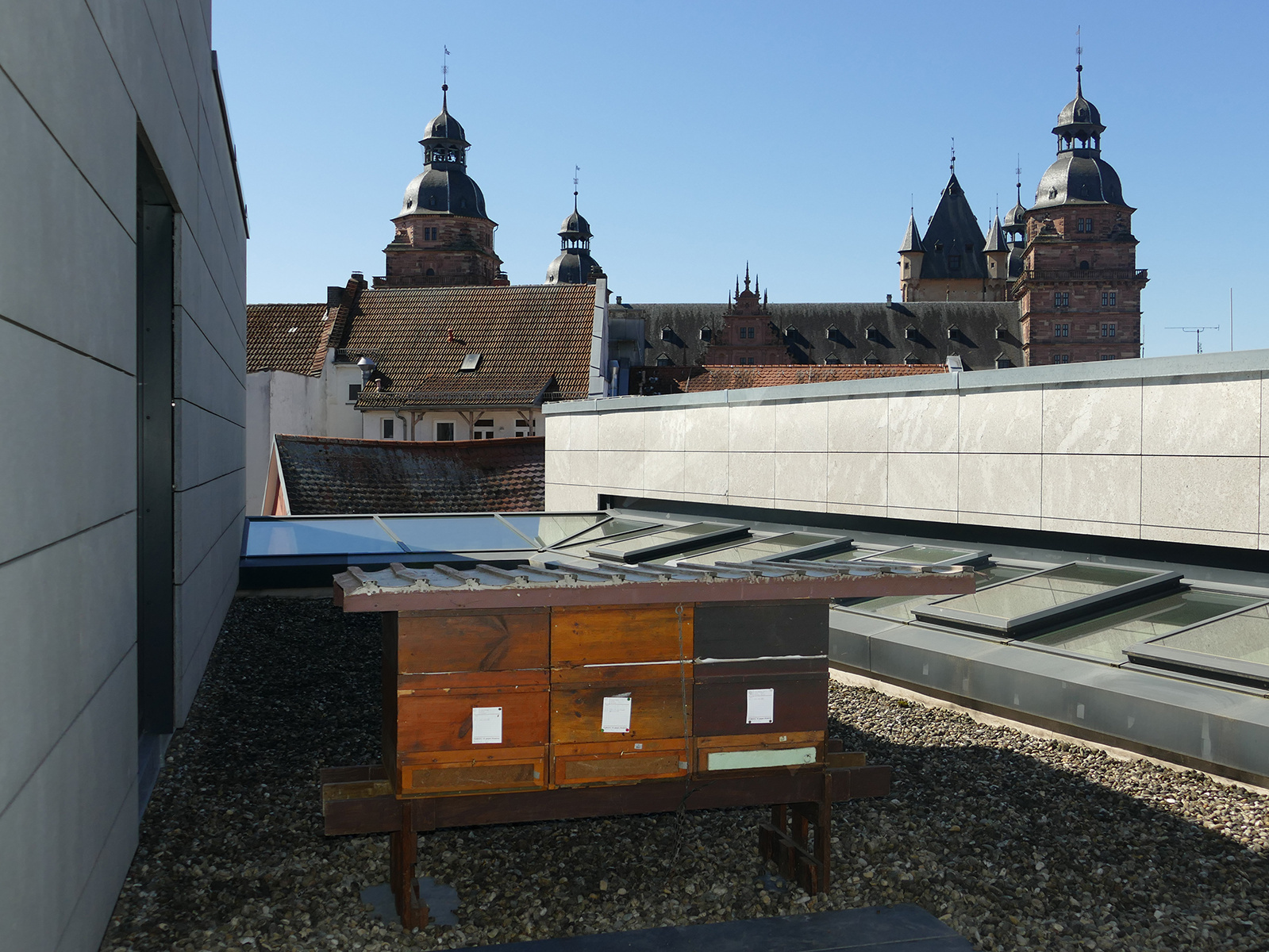 Sie haben auf einem anderen Teil des Flachdaches ihr neues Zuhause, wieder mit einem wunderbaren Blick auf das Aschaffenburger Schloss. Betreut wird das Stadtbienenprojekt jetzt von Imker Harald Merget vom Bienenzuchtverein Aschaffenburg-Damm. Noch sind die Insekten in Kurzarbeit, nicht wegen der Pandemie sondern weil die Temperaturen noch nicht passen. Das soll sich aber die nächsten Tage ändern. Das Martinushaus-Team jedenfalls freut sich schon auf die erste Honigernte.