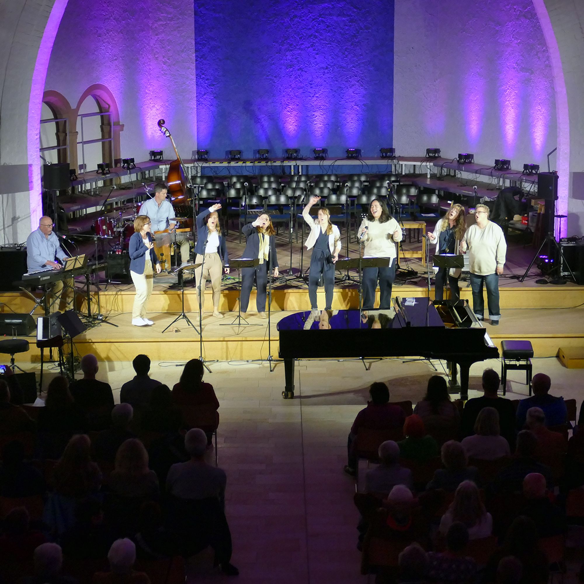 Die Stiftsbasilika Sankt Peter und Alexander hatte sich mit „Voces“ ganz der klassischen Musik verschrieben. Zwischen den zwei anspruchsvollen Auftritten des Vokalensembles stellten Orgelschülerinnen des Regionalzentrums für Kirchenmusik ihr Können unter Beweis. Noch an vielen anderen Orten konnten die Besucher erleben, wie bunt die christlichen Kirchen sind. In der Sandkirche bot die ökumenische Klinikseelsorge Texte und Musik zum Thema Umgang mit Lebensumbrüchen, im Ökumenischen Kirchenladen war Raum für Lieder und Gespräche. In der Spitalkirche konnte man mehrstimmigen Gesängen aus der orthodoxen Tradition zuhören. Sehr liebevoll hatte der Katholische Deutsche Frauenbund (KDFB) das Freigelände des Pfarrzentrums Marienstift in einen Garten der Sinne verwandelt, in dem man sehen, hören, fühlen, riechen und einfach mal zur Ruhe kommen konnte.