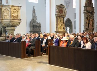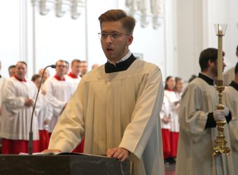 Verwandte, Freunde und Gläubige aus der Heimat- und Praktikumspfarrei des Weihekandidaten, Mitglieder des Domkapitels und Priester aus allen Teilen des Bistums nahmen an der Feier teil. Musikalisch umrahmten der Domchor unter Leitung von Domkapellmeister Christian Schmid, das Bläserensemble am Würzburger Dom sowie Domorganist Professor Stefan Schmidt die Feier unter anderem mit Werken von Giovanni Pierluigi da Palestrina, Urban Loth, Tomas Luis de Victoria und Sigfried Karg-Elert. Am Pfingstsonntag, 9. Juni, feiert Neupriester Elsesser um 14 Uhr in Schöllkrippen Primiz. Primizprediger ist Pfarrvikar Dr. Simon Schrott.