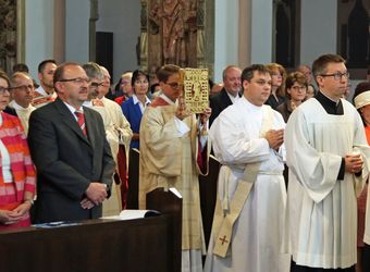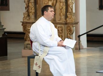 Der Priester werde geweiht für die Christusrepräsentation in der Kirche, fuhr Bischof Jung fort. Das amtliche Handeln des Priesters mache ihn jedoch nicht unhinterfragbar. Die Kirche habe immer sorgfältig unterschieden zwischen dem Amt und der Person des Amtsträgers: „Wenn der Priester amtlich handelt, dann handelt Christus durch ihn und in ihm.“ Die Unterscheidung zwischen Amt und Person enthebe den Amtsträger nicht davon, sich selbst immer tiefer Jesus Christus zu verbinden und sich selbst zu heiligen. Dem entspreche die Frage im Weiheritus: „Bist Du bereit, Dich Christus dem Herrn Tag für Tag enger zu verbinden, und so zum Heil der Menschen für Gott zu leben?“ Als nächstes betrachtete der Bischof die Gemeindeleitung, die dem Priester anvertraut sei. Wer mit einer Machtposition betraut sei, könne gerade in Zeiten der Schwäche die eigene Macht mit dem verwechseln, was Macht eigentlich bedeute, nämlich „andere befähigen, ihre Charismen zu entdecken, die Gemeinde ermutigen, ihren Glauben zu leben“. Daran erinnere Johannes, dem es nicht um Macht, sondern um Autorität gehe. „Es geht nicht um Dich, es geht um den Herrn, den es zu entdecken gilt in den Schwestern und Brüdern, den Ärmsten und Armen, für die Sie heute in der Weihe Verantwortung übernehmen“, gab Bischof Jung Elsesser mit auf den Weg. „Nicht Macht, sondern Autorität ist die Aufgabe in der Gemeindeleitung.“