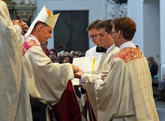 Der priesterliche Dienst sei zugleich Aktion und Kontemplation, fuhr der Bischof fort: „Arbeit ohne Gebet führt schnell zum Burn-out, aber Beten ohne Arbeit wird schnell weltfremd und weltenthoben. Beides gehört zusammen.“ Im Tun kontemplativ zu leben, wie es der heilige Ingatius sage, führe zur eigentlichen Reife des geistlichen Lebens. „Es führt dazu, dass man alt wird, ohne vergreist zu sein, innerlich jung bleibt und trotzdem die Reife des Alters mit sich bringt. Dafür stehen die beiden Apostel Petrus und Johannes. Und das wünsche ich Ihnen heute für Ihren Dienst.“ Wenn man alles aufschreiben wolle, was Jesus getan habe, so könnte die ganze Welt die Bücher nicht fassen, die man schreiben müsste, zitierte Bischof Jung aus dem letzten Satz des Johannesevangeliums. Damit sei nicht gemeint, dass Jesus viele, sondern dass er große Dinge getan habe, die sich dem menschlichen Begreifen entzögen. „Es geht eben nicht darum, vielerlei und vieles zu tun, sich zu verzetteln. Sondern es geht darum, viel zu tun und es aus dem rechten Geist zu tun“, sagte der Bischof.