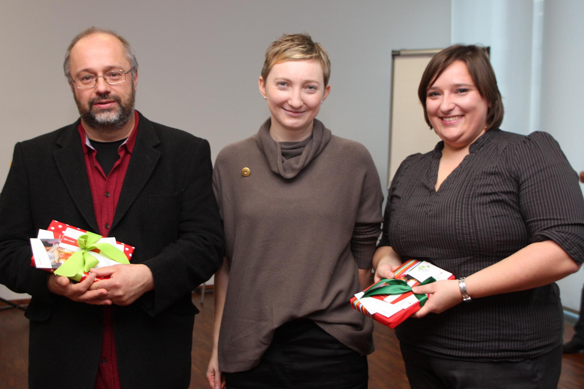 die Bildungsarbeit und Burkard Vogt ein Liederbuch und einen Notenständer für