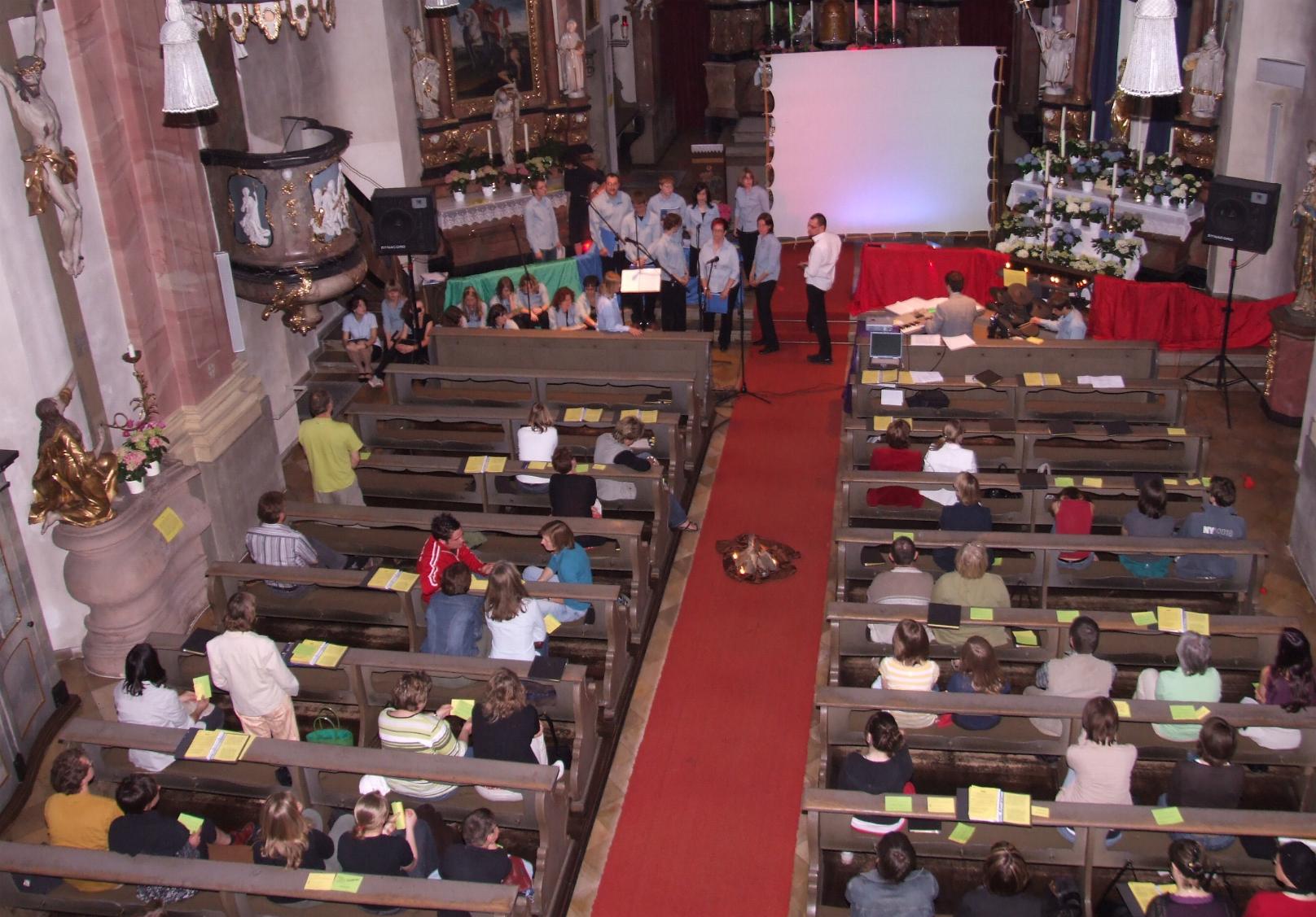 Neuland entdecken – das Motto der Jugendkirche passte im doppelten Sinne: neu war in diesem Jahr die Beteiligung der Regionalstelle für kirchliche Jugendarbeit an der Kirchennacht und vieles Neues gab es dort zu entdecken. Den Aschaffenburgern eher als barocke Wallfahrtskirche bekannt, war der Kirchenraum an diesem Abend in völlig neuem Licht getaucht und zog damit nicht nur Jugendliche an. Nach einem Jugendgottesdienst konnte man bei einer Rallye den Kirchenraum neu entdecken oder dem Chor „Auftakt“ lauschen, der ein Konzert mit Neuem Geistlichen Lied gab.
