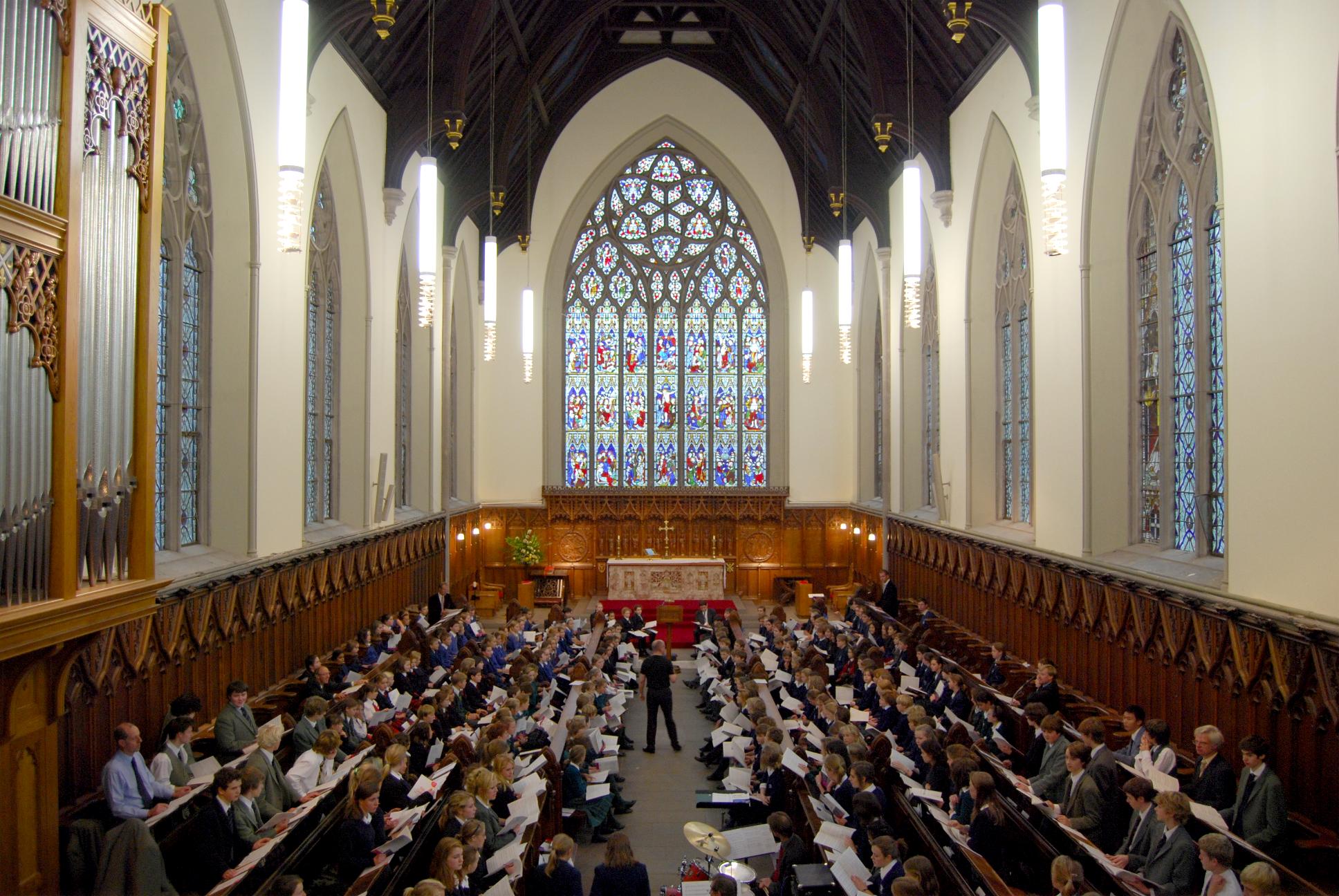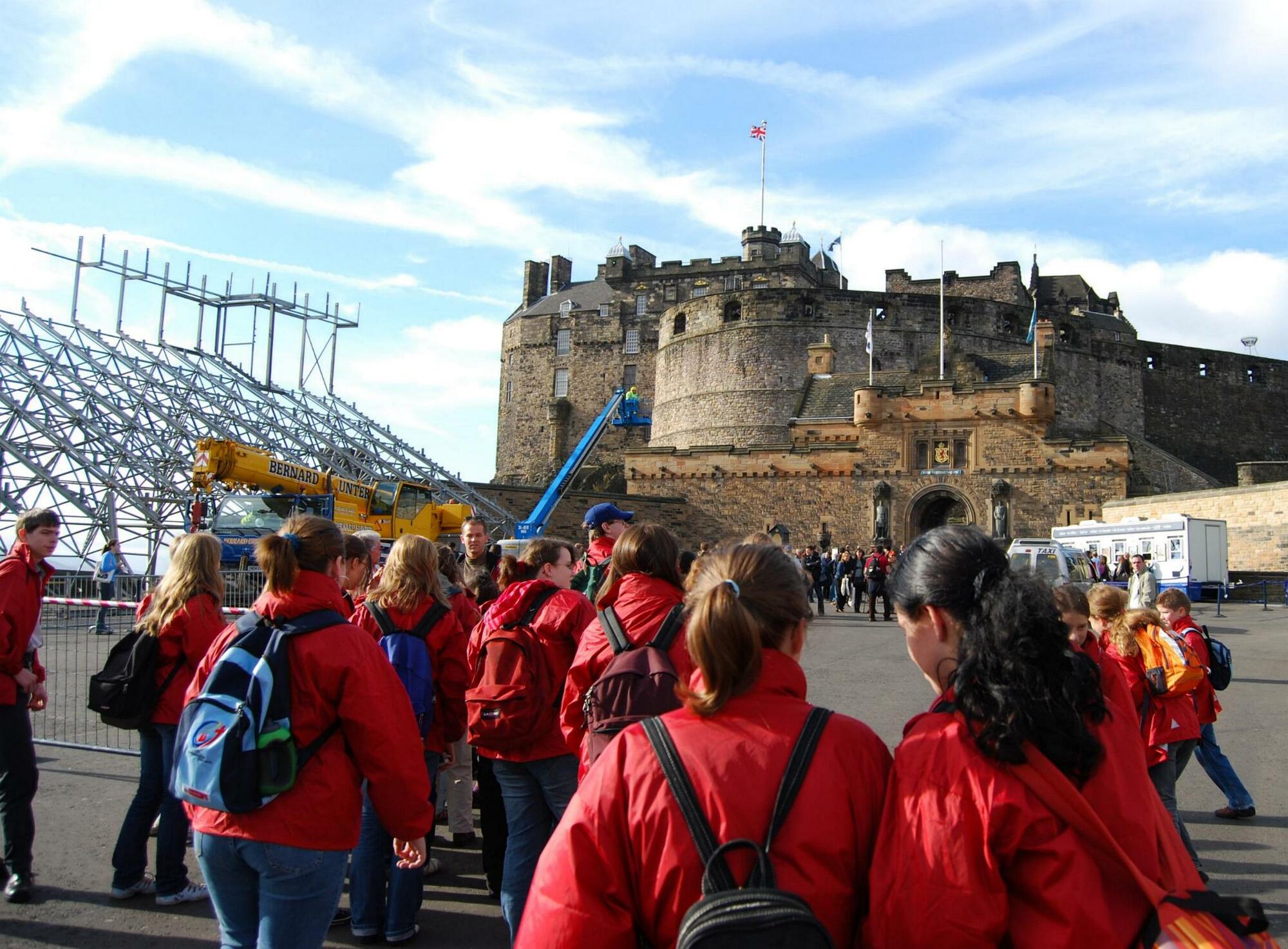 Höhepunkt des Aufenthaltes war sicherlich die Teilnahme am Choral Day im Glenalmond College. Die Leitung hatte dort der englische Sänger und Dirigent Bob Chilcott, der zu einen der bedeutendsten Kirchenkomponisten unserer Zeit zählt. Gemeinsam mit schottischen Kinderchören durften die jungen Aschaffenburger Sängerinnen und Sänger einen eindrucksvollen Tag erleben. Schon das Gebäude des Internats versetzte alle in Erstaunen: es war so typisch britisch, dass die Kinder sich sofort an Harry Potters Schule Hoogwarths erinnerten. In diesem Ambiente erarbeiteten und musizierten sie die "Little Jazz Mass" von Bob Chilcott. Alle waren mit Eifer, Konzentration und Spaß bei der Sache, die zuvor befürchteten Sprachbarrieren spielten keine Rolle. „Die Sprache der Musik versteht eben jeder, egal aus welchem Land er kommt“, fasste der Leiter des Knaben- und Mädchenchores, Stiftskantor Unterguggenberger dieses Erlebnis zusammen. Zum Abschluss der Reise wurden die Sängerinnen und Sänger noch vom Provost von Perth im Rathaus empfangen und durften dort einen Pompejaner überreichen und die Grüße des Oberbürgermeisters Klaus Herzog übermitteln. Beim Abschied von den gastgebenden schottischen Kindern flossen zahlreiche Tränen, waren sich die Kinder und Jugendlichen trotz der kurzen Zeit und der Sprachbarrieren doch sehr nahe gekommen.