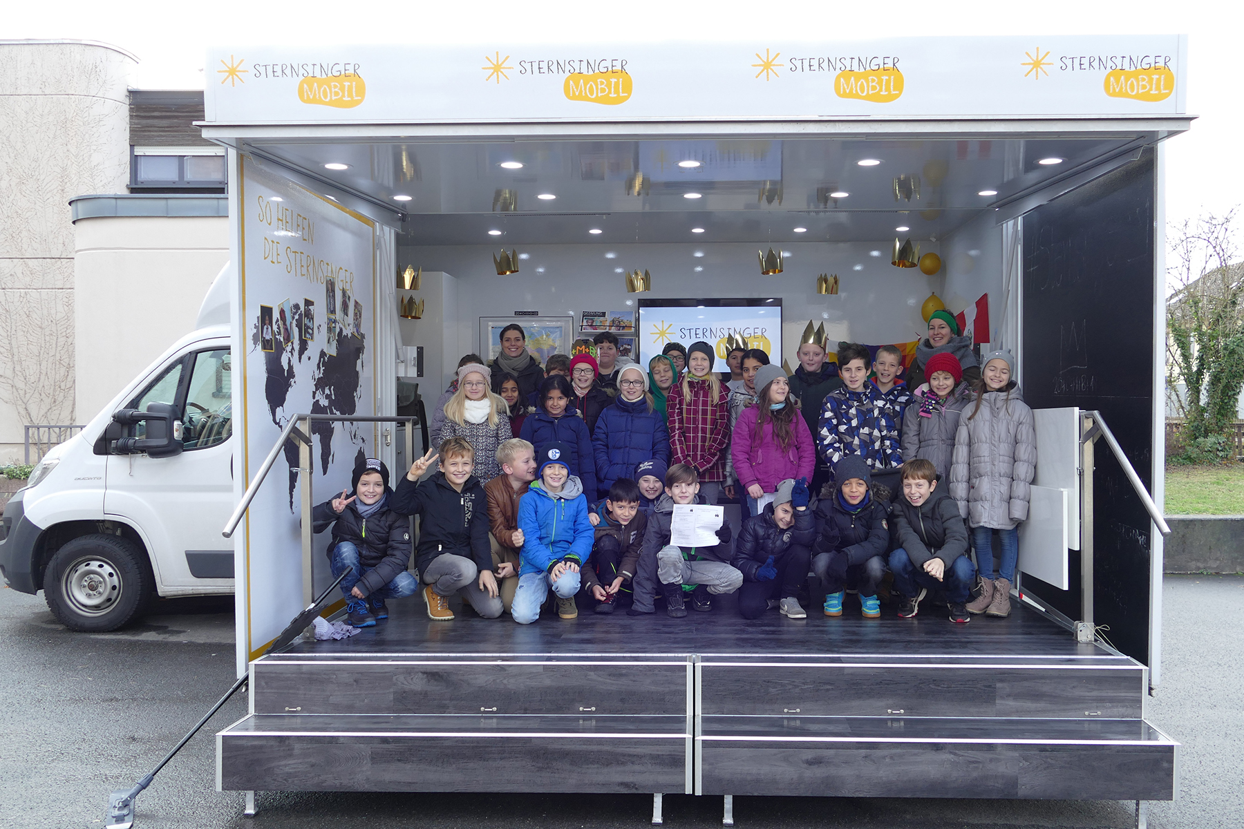 Am 6. Januar bekommen sie vielleicht Besuch – von den Sternsingern. Bei diesem alten Brauch gehen Kinder der Gemeinde von Haus zu Haus, bringen den Segen und singen ein Lied. Aber bevor die Aktion starten kann, müssen sich die Kinder natürlich darauf vorbereiten. In Stockstadt hatte die Gemeindereferentin dazu etwas ganz besonderes organisiert: Sie hat das Sternsingermobil bestellt, das kreuz und quer durch Deutschland tourt und auf die Aktion aufmerksam macht.
