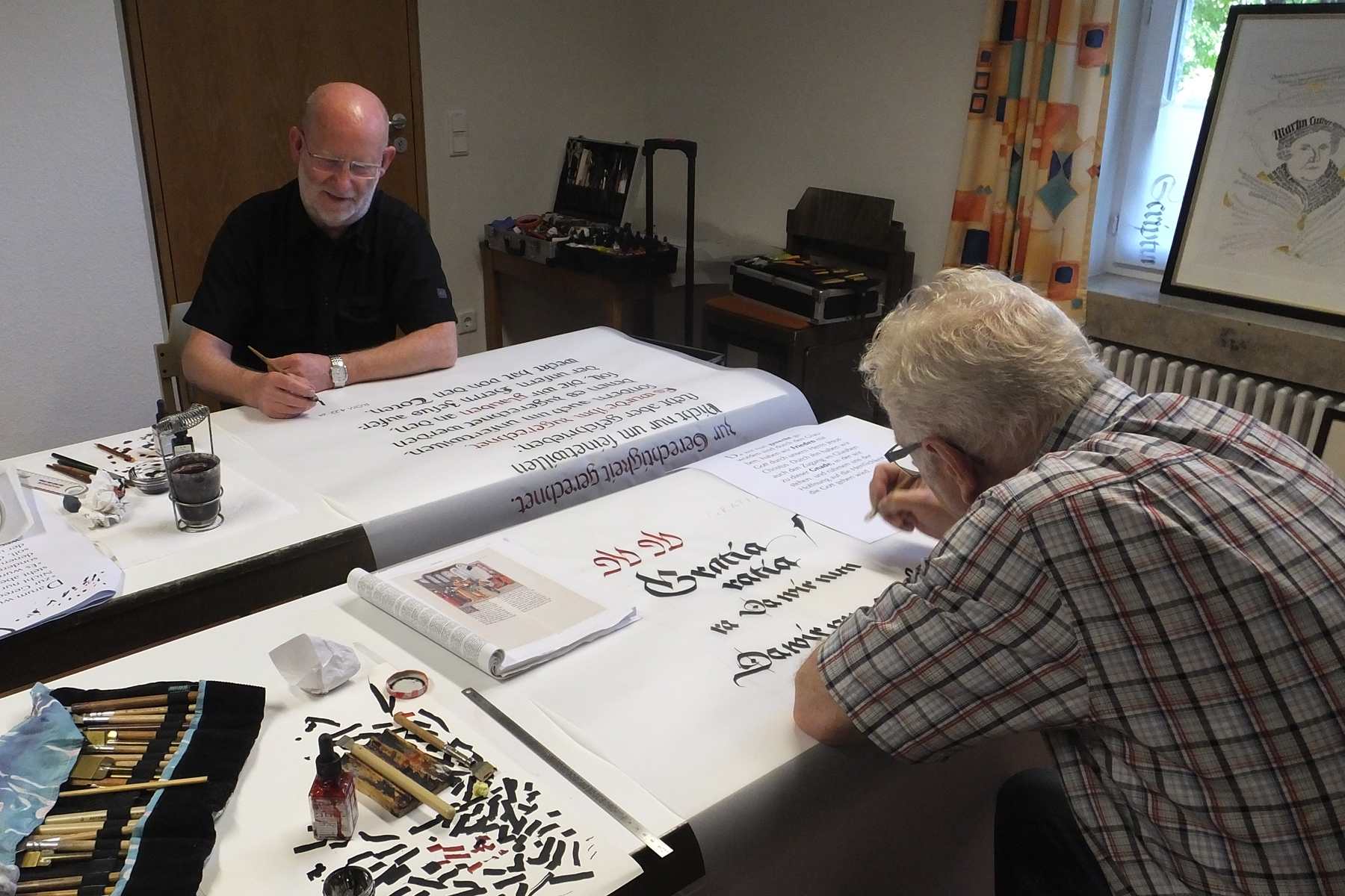 Es geht um einen Text aus der Heiligen Schrift, der Luther sehr wichtig gewesen ist - und Auszüge dieses Texte sind als Kalligrafie dargestellt, was nichts anderes bedeutet als "die Kunst des Schönschreibens". "Solala ... Allein Schrift, Glaube, Gnade" ist das ganze überschrieben und Burkard Vogt wollte mehr darüber wissen.