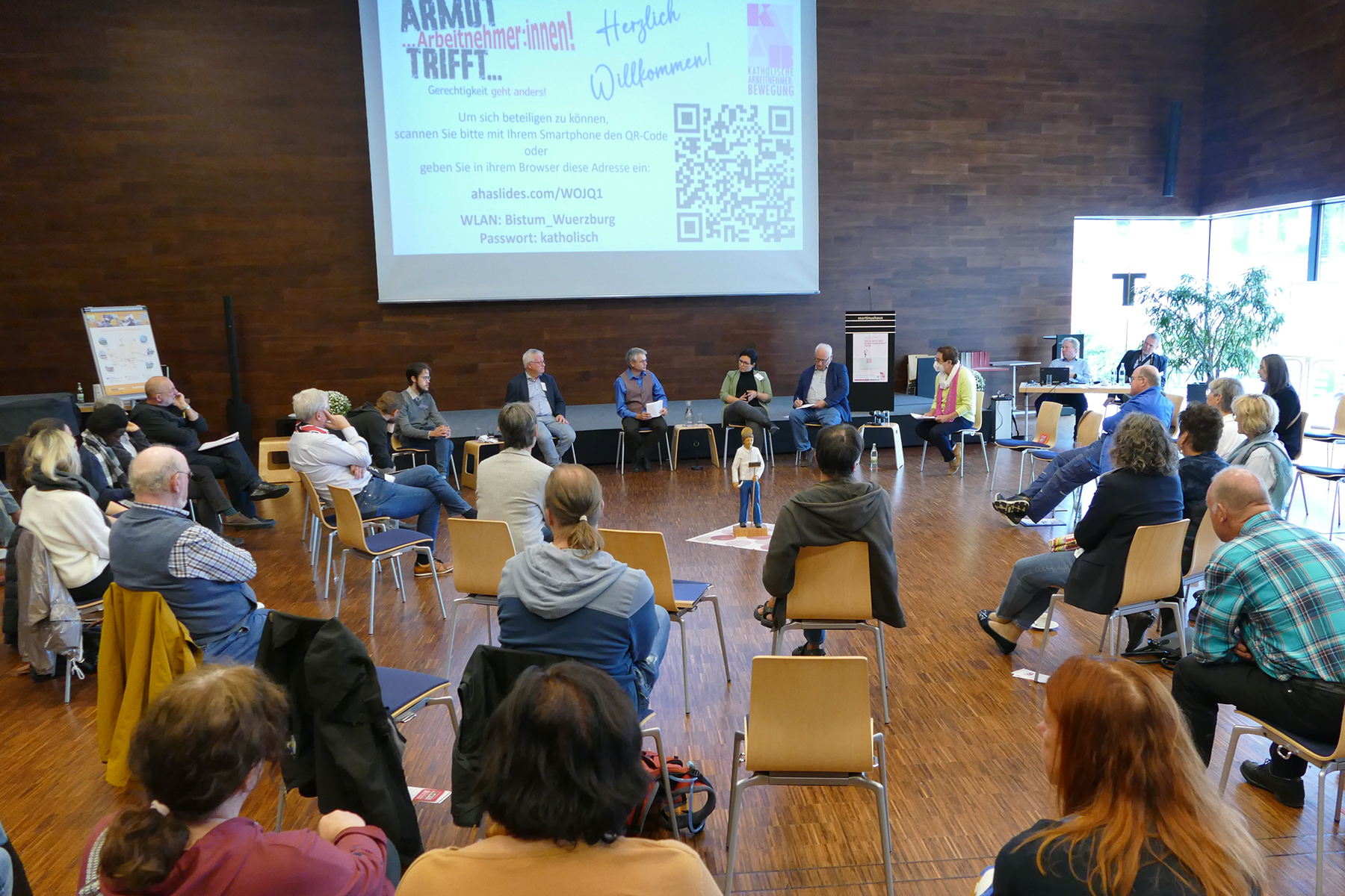 In ihren Statements machten Dr. Bernhard Emunds, Professor für Christliche Gesellschaftsethik und Sozialphilosophie, und KAB-Bundespräses Stefan B. Eirich deutlich, dass unser Wirtschaftssystem Gerechtigkeit oft vermissen lasse. Eirich verwies unter anderem auf den Gender-Pay-Gap, also den Verdienstunterschied zwischen Frauen und Männern, der im Osten Deutschlands bei sechs Prozent und im Westen bei 18 Prozent liege. Er forderte einen größeren Einsatz der Kirchen für die Gerechtigkeit für Frauen. Es sei höchste Zeit, dass sich Bischöfe und Kirchenleitungen in die zunehmenden Verteilungskämpfe dieser Tage einbringen, sagte der Theologe. „Vielleicht gäbe es etwas an Glaubwürdigkeit zurückzugewinnen, wenn sie entdecken würden, dass es auch außerhalb der Kirchen und ihrer ergebnisarmen Reformbemühungen um mehr Gender-Gerechtigkeit eine Frauenfrage gibt mit fortdauernder Diskriminierung, Lohn- und Rentenlücken.“