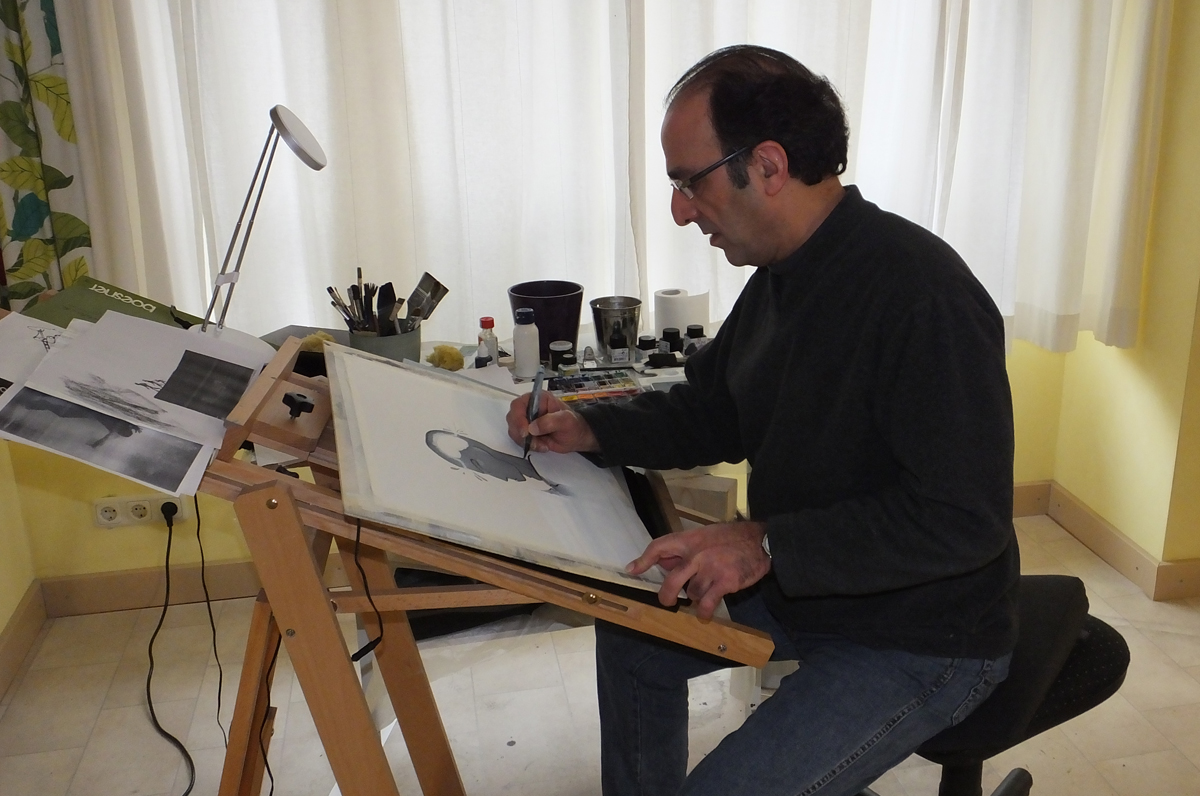 Solche Zeichnungen wird es bei der Karikaturen-Ausstellung im Miltenberger Rathaus, die am 11. Januar eröffnet wird, nicht geben. Trotzdem hat die Ausstellung mit dem Islam zu tun, denn neben den Bildern der in unserer Region bekannten Zeichnern Greser & Lenz und Hauck & Bauer sind auch Werke von Maneis Arbab zu sehen. Der Künstler ist 2009 aus der islamischen Republik Iran geflohen und lebt inzwischen in Würzburg. Mit seinen Bildern verarbeitet er auch die Ereignisse der letzten Jahre. Burkard Vogt will den Künstler vorstellen und hatte ihn dazu diese Woche besucht - wenige Stunden vor dem Bekannt werden des Anschlags in Paris. Seinen Radiobeitrag können Sie unten anhören.