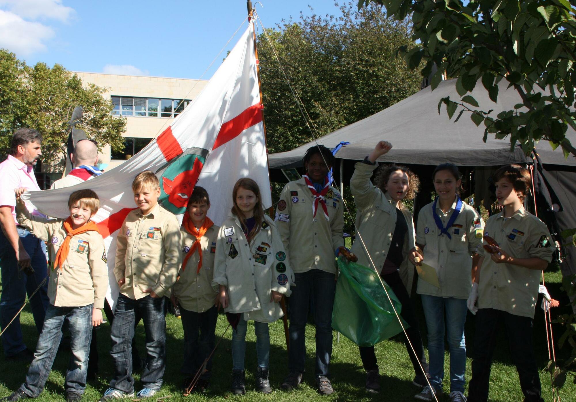 Wer letzten Sonntag durch Aschaffenburg spazierte, konnte auf der Wiese vor der City-Galerie ein schwarzes Zelt entdecken. Drum herum tummelten sich viele junge Leute in sandfarbenen Hemden. Der Aschaffenburger Pfadfinderstamm Johannesburg hatte dort ein Lager aufgeschlagen um auf sein Jubiläum aufmerksam zu machen.