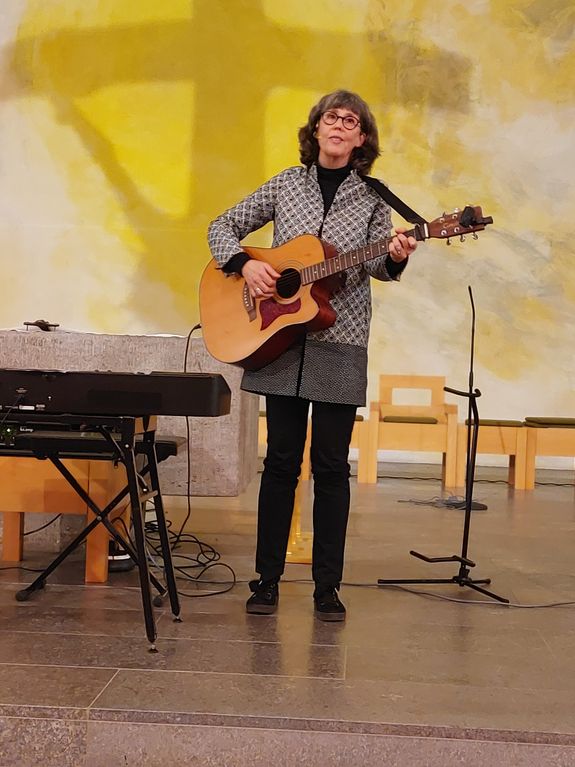 Unter der Überschrift „MENSCH-Werdung" hatte die Liedermacherin ihre Lieder und Texte ausgewählt. Impulse regten dazu an, das Menschsein Jesu Christi in den Blick zu nehmen. Seine Botschaft für die Menschen wurde von ihr konkret in die Begegnung mit einem Obdachlosen und in die gegenwärtige Sehnsucht nach Frieden unter den Menschen übersetzt. Die Liedermacherin arbeitet ehrenamtlich in der Würzburger Bahnhofsmission und bat wegen ihrer Begegnungen mit den Menschen dort um Spenden. Insgesamt wurden 600 Euro gesammelt. Pastoralreferent Walter Lang dankte für ihr authentisches Zeugnis des gelebten Christseins in Liedern und Erfahrung. Die nächste „Zeit für uns" ist am Sonntag, 12. Januar 2025, wieder in der neuen Kirche in Schimborn. Alle Informationen unter www.zeitfueruns.de.