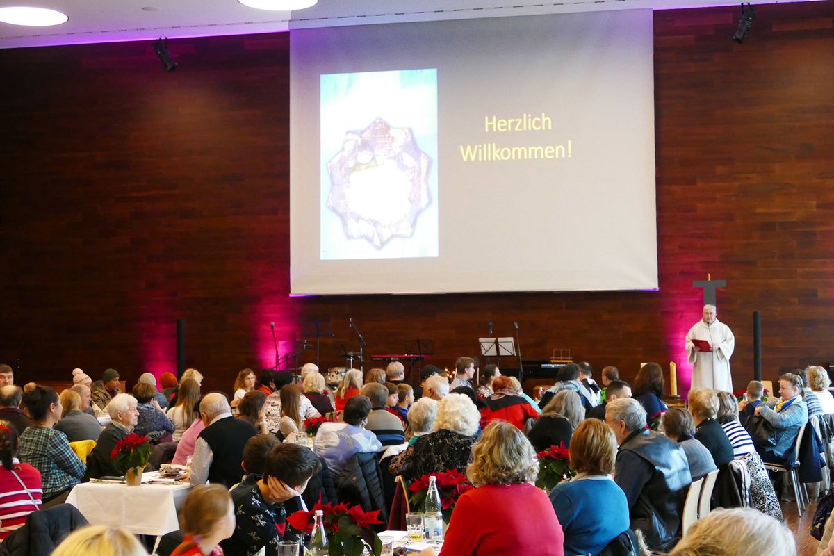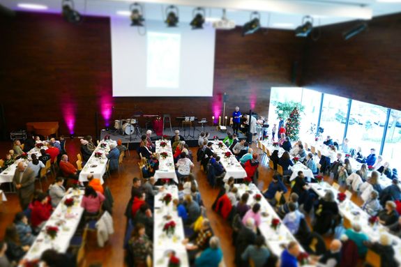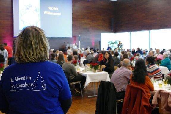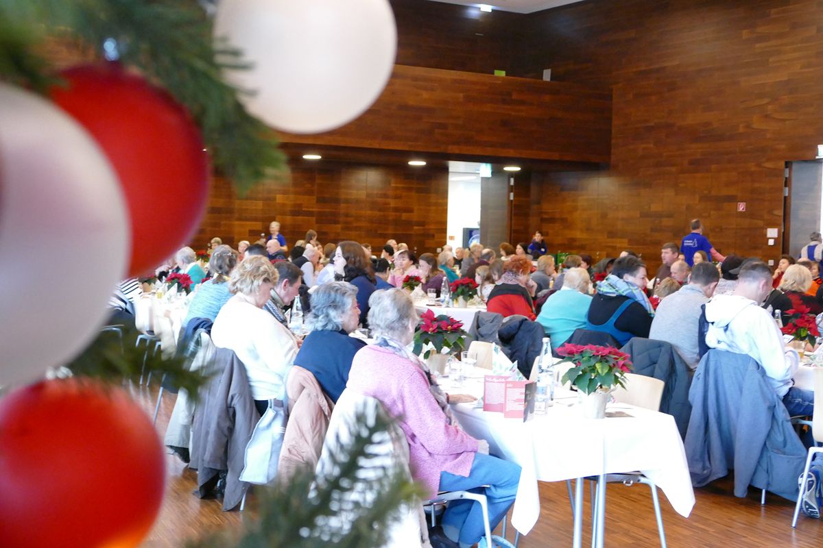 Bereits seit Anfang der 1970er Jahre werden Menschen, die sich keine Feier leisten können oder die an diesen Tagen alleine sind, zu einer gemeinsamen Weihnachtsfeier eingeladen. Rund 60 ehrenamtliche Helfer unterstützten Anje Elsesser, Leiterin des Hauses, Projektmanagerin Saskia Braun und weitere Mitarbeiter der kirchlichen Einrichtung. Kinder konnten an Tischen malen und basteln oder in der Jugendeinrichtung Katakombe im Keller des Hauses Tischkicker und Billard spielen, die Erwachsenen trafen sich im großen Saal des Hauses. Dr. Ursula Silber, Rektorin für Bildung und Konzeption, hielt dort eine kurze Andacht, bei der die biblische Weihnachtsgeschichte erzählt wurde und eines der Kinder das Jesuskind in die Krippe legen durfte. Gemeinsam beteten die Teilnehmer das Vaterunser und sangen „Oh du fröhliche“. Danach gab es ein Essen und anschließend ein kleines Weihnachtskonzert von einer Gruppe von Musikern. Zum Abschluss erhielten alle jeweils noch ein kleines Weihnachtsgeschenk.